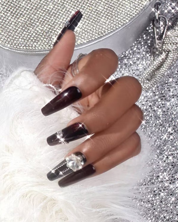 Medium Press On Nails Black Star Rhinestone Nail Art Stickers