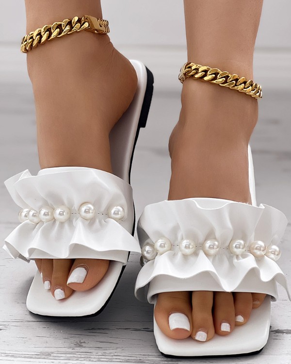 Pearls Decor Ruffles Beach Slippers Summer Sandals