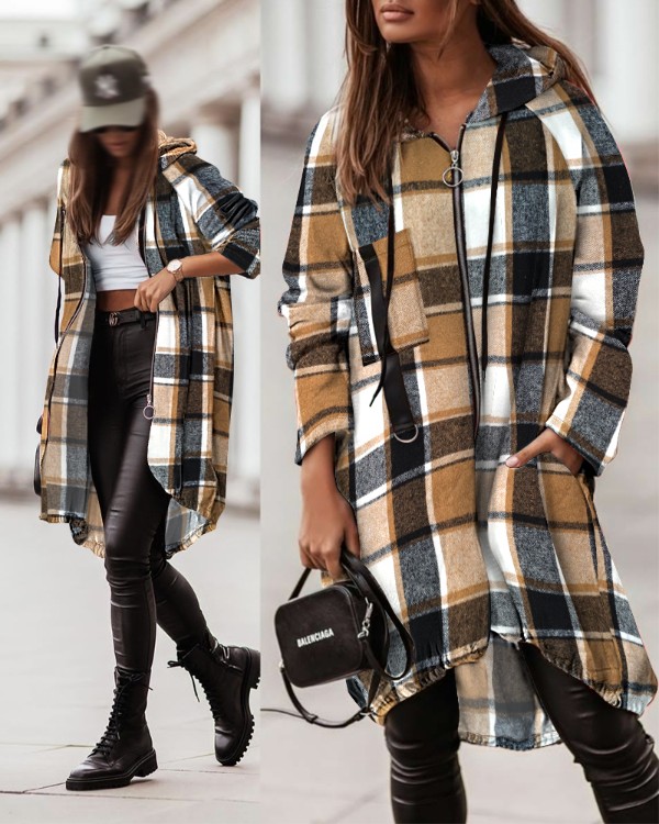 1. Plaid Print: Eye-catching plaid print with large color blocks for a trendy and popular look.