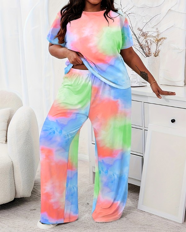 Plus Size Tie Dye Print Short Sleeve Pajamas Set