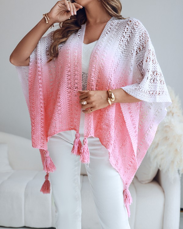 Tie Dye Open Front Casual Hollow-out Cover Up